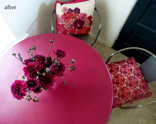 Next is the dining room/kitchen. I'm so bummed I didn't get better pictures of it because it was one of my favorite spaces in the house. It was also the hardest to pack though, so by the time I got to packing it, I was out of time to get it looking perfect and take pictures. I didn't take pictures of the laundry room (which never really looked great) either. Here's the view from above our kitchen table, pulled from a blog post about painting that table. The lower left hand corner of the photo points toward where the doorway into the living room is. Then there's a window in the upper left corner, the grey door to the laundry room, and the rest of the kitchen is to the right of this photo. Our dining room chairs were a wedding gift from my in laws from World Market.